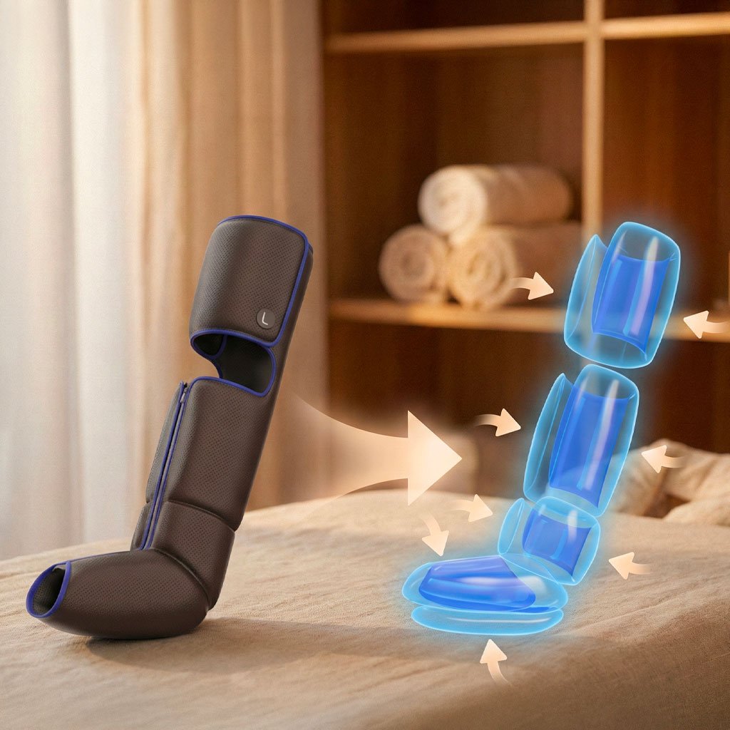 La chaleur se concentre au niveau des pieds et chevilles, réglable entre 40 et 60 °C. Elle s’active indépendamment de la compression pour une personnalisation totale. Beaucoup d’utilisatrices l’activent le soir pour un effet cocon immédiat.