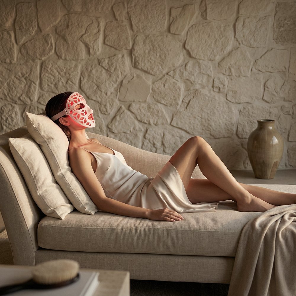 Les LED rouge et infrarouge soutiennent la réparation du derme pour adoucir les ridules et lisser visiblement le visage fatigué.